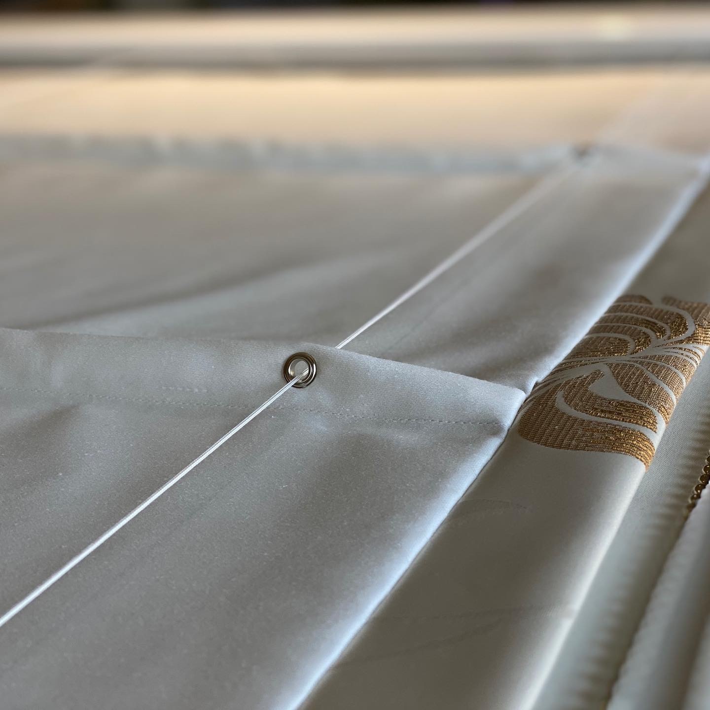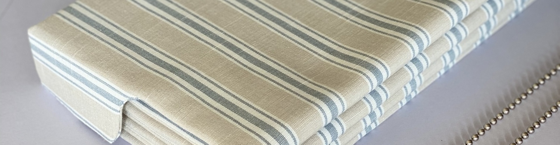 There are a variety of options for handmade roman blinds, from great value recess blinds to a high end finish. The last one is made to look like a pelmet with the use of integrated track side covers hiding the track and providing you with a beautiful finish to the window as fitted outside the recess. This clever method reduces the flow of the light to a minimum when blind is down and increases the light to a maximum when the blind is pulled up. It also allows you to use your window sill for displaying photos or keeping plants as the blind comes outside the sill. Don't forget trims, beads, boarders and waterfall can all make your new bespoke blind absolutely outstanding.