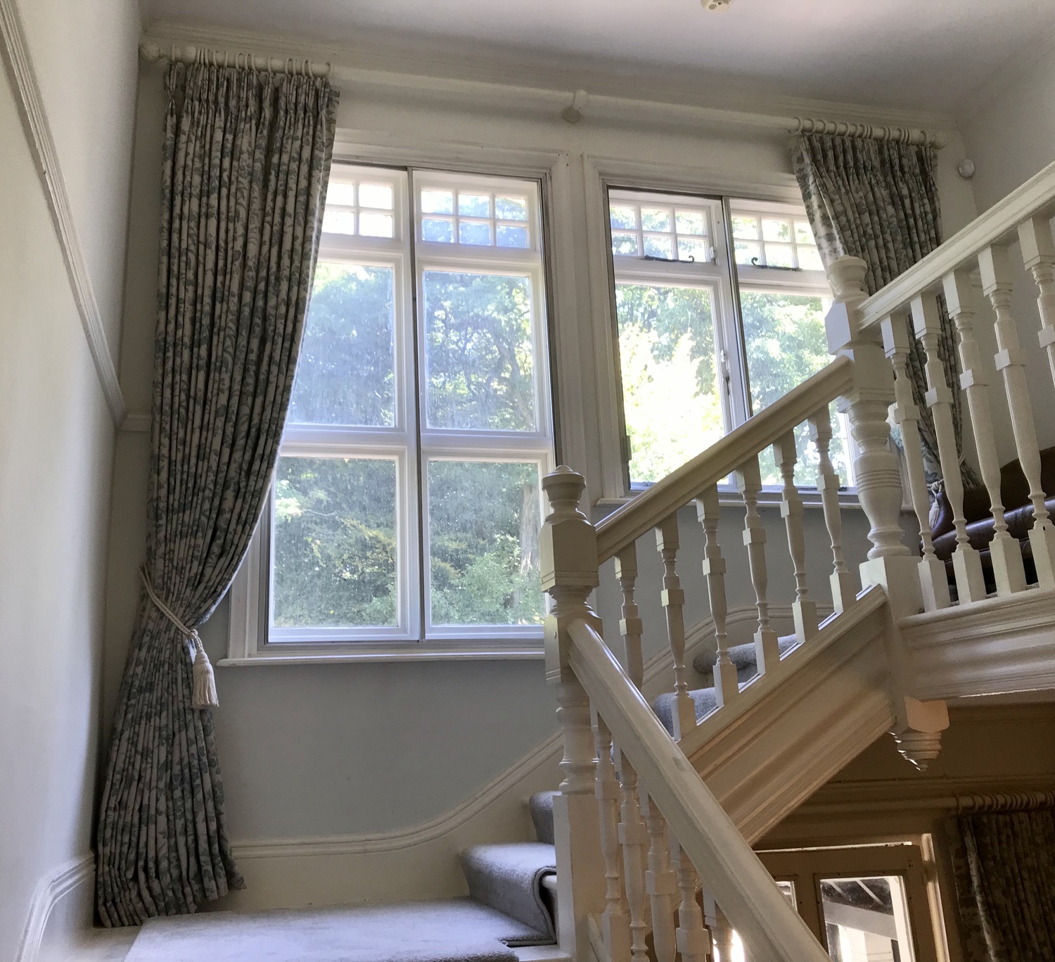 New Forest Designs offers bespoke and handmade window dressings including high quality roman blinds and handmade curtains. Each bespoke window dressing is made by us. We are proud to provide fully handmade window dressings, not simply hand finished, and we use the best interlining, lining, blackout and professional tracks and poles. Bespoke handmade window dressings from New Forest Designs are provided as part of a complete service that includes professional advice on the best way to dress the window, a survey to measure the window opening, the order and delivery of free fabric samples for the clients perusal, free estimate of costs, order of the fabric and all materials and creation of your beautiful curtains or blinds. The service is finished with a special personal touch which includes delivery and dressing. We have a beautiful and wide range of poles and professional tracks that can also form part of the bespoke service. The fitting of your new bespoke window dressing can also be taken care of by a professional fitter.